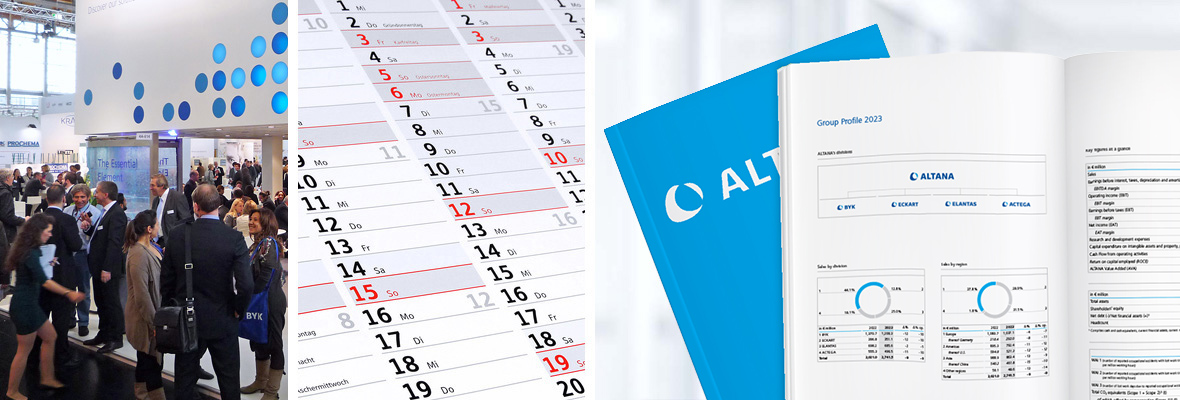 Corporate Report 2023: Letter from the Management Board | About This Report | Sustainability Management | Corporate Bodies and Management | Report of the Supervisory Board | Now - for the Future | Group Management Report | Products | Safety and Health | Environment | People | Social Commitment | Consolidated Financial Statements (condensed version) | Multi-Year Overview | Global Compact: Communication on Progress (COP) | ALTANA worldwide | List of Shareholdings | Overview | Contact