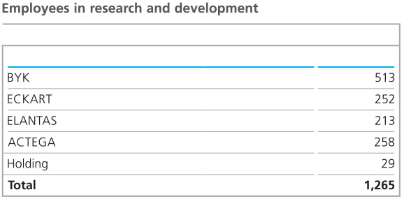 ALTANA’s investments in the realm of technology platforms increased compared to the previous year. This demonstrates the constant expansion of this area, based on targeted customer cooperation.